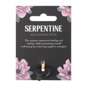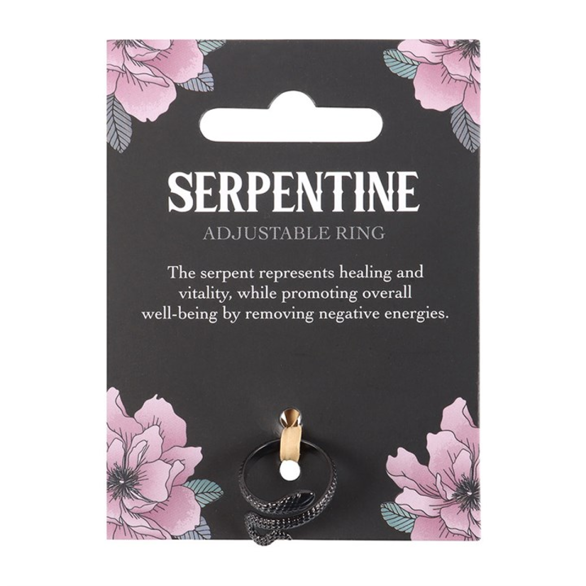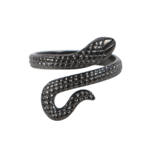 This dark and elegant ring features a delicate snake in a cool black finish. It’s adjustable fit allows it to coil around any finger, making it a striking and versatile accessory. Presented on a floral backing card and perfect for gifting. Nickel-free stainless steel.