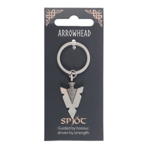 Inspired by Norse weaponry, this Spjót arrowhead keyring symbolises sharp focus and direction. Made from durable alloy, it’s a powerful addition to any set of keys and a great gift for fans of Viking heritage.