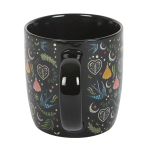 Sip your favourite brew in folk-inspired style with this black ceramic mug featuring a colourful all-over Midnight Bloom floral print. A stylish choice for work desks, cosy kitchens or gifting to lovers of stylish drinkware. 350ml capacity. Microwave safe. Dishwasher safe.