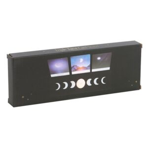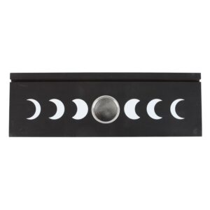 Display tarot card readings with this black wooden moon phases tarot card stand, complete with two spaces for holding tealight candles to create ambiance and allow the meaning of the cards to resonate. Whether it’s used for displaying treasured tarot cards for their meaning or their unique design, this piece will add mystical allure to any home.