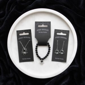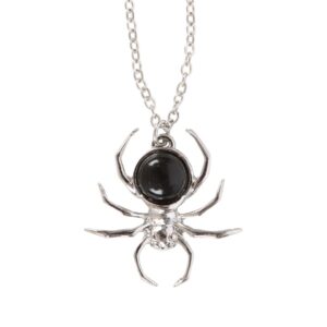 Add a little spooky to your style with this spider necklace crafted from stainless steel and featuring black obsidian details. Appearing as if dangling from a thin thread of web, this necklace is equal parts elegant and eerie.