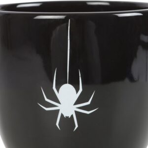Show off your soft and delicate side with this gothic style teacup. Featuring a thorny black handle and printed spider accent, this eerily elegant cup will stand out at your next dark soirée. 400ml. Do not microwave. Handwash only.
