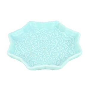 Awaken your senses with this ceramic incense holder shaped like a traditional mandala. Finished in a calming blue colour, this ceramic holder will look elegant on a side table or nightstand while catching falling ash.