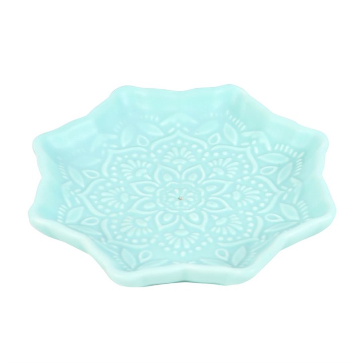 Awaken your senses with this ceramic incense holder shaped like a traditional mandala. Finished in a calming blue colour, this ceramic holder will look elegant on a side table or nightstand while catching falling ash.