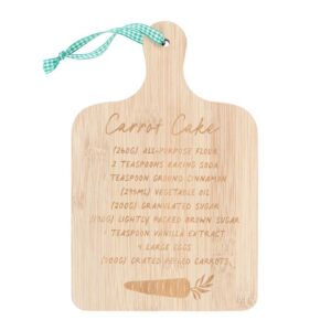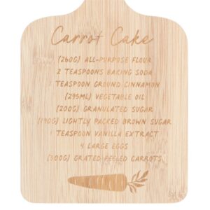 Serve up a slice of freshly baked cake on this wooden serving board, complete with a carrot cake recipe for inspiration. A perfect gift idea for any home baker.