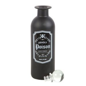 Create your own wicked apothecary with this decorative potion bottle. Made of frosted glass accented by a vintage-inspired ‘Deadly Poison’ label and finished with a clear glass stopper for capturing all things dark and mysterious. 250ml capacity. Hand wash only. Do not microwave.