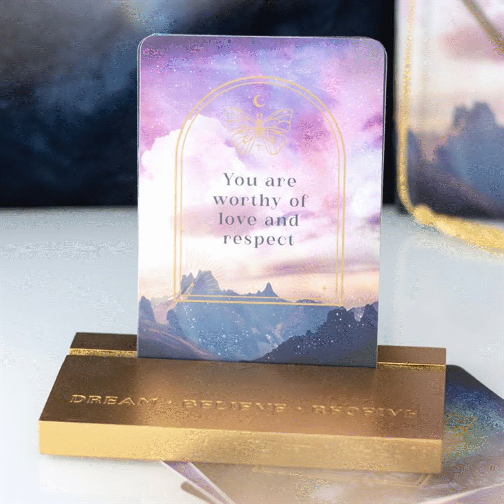 This set of 10 affirmation cards will ensure each day starts with a bit of magic. Features ethereal sky designs with 10 inspiring messages and a wooden stand. This set is great for displaying on desks or side tables as a reminder of one’s inner strength and resilience.