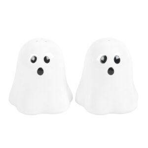 Add some scares to your Halloween table with this pair of ghost salt and pepper shakers. Whether used for wicked feasts or seasoning spooky dishes, these ghosts will be welcome guests at your next dinner party. Food safe. Hand wash only.