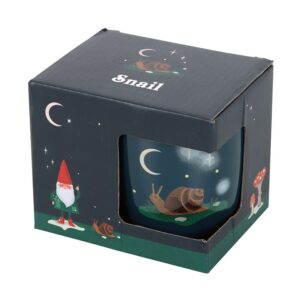 This stunning mug features a winter-forest inspired design that will make sure every morning starts with a touch of magic and wonder. Featuring an adorable snail illustration accented by a crescent moon and stars, this navy-blue mug is perfect for hot beverages in the colder months. 350ml capacity. Dishwasher and microwave safe.