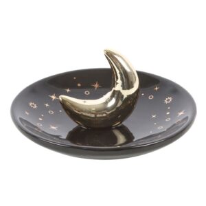 Illuminate your senses with this ceramic incense holder shaped like a crescent moon. Elegant and dreamy, this ceramic holder will look beautiful on a side table or nightstand while catching falling ash.