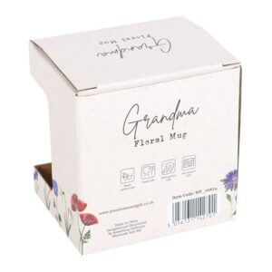 footed pedestal and showcases an exquisite design. Its graceful curved handle, in a soft shade of pale green, beautifully complements the captivating pattern. The delicate script font elegantly displays the word ‘Grandma,’ making it an ideal present for that special individual, while also paying homage to the enchanting British countryside. Dishwasher and microwave safe.