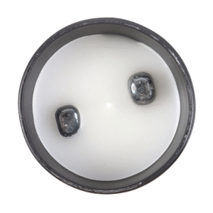Detoxify negative energies with this healing hematite candle. Infused with the grounding properties of hematite, this unscented candle features polished gemstones to clear negativity and encourage positive energy. Encased in a black glass jar with a metal lid, packaged in a matching cardboard box ready for gifting. The crystal will release from the wax with use and can be later reused for a multitude of spiritual purposes. Approximate burn time of 18 hours.