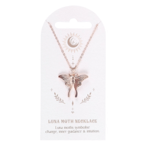 This ethereal necklace features a dangling nickel-free stainless steel luna moth pendant, making it an elegant piece to add to any jewellery collection. The luna moth symbolises change, inner guidance and intuition, also representing timeless beauty. Beautifully presented on a matching backing card.