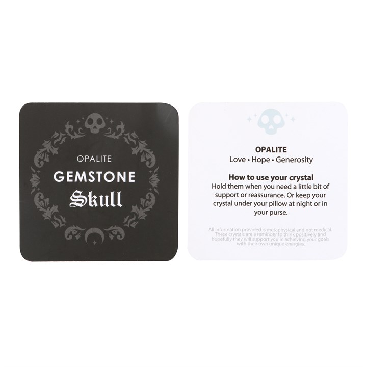 This crystal skull is made from opalite which is a stone renowned for its ability to evoke feelings of love, hope, and generosity. The skull is the perfect size for holding in the palm of your hand then you need a little support or reassurance. This unique piece serves as a stylish desk accessory, always within arm’s reach for those moments of need. Presented in a black drawstring pouch for keeping the skull safe whilst on the go.