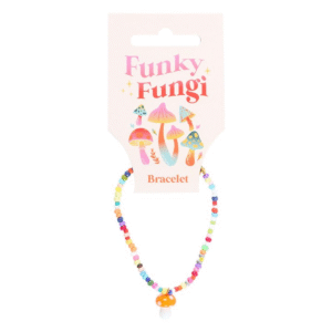 Add a touch of colour and joy to your jewellery collection with this glass toadstool mushroom beaded charm bracelet. This delightful bracelet features an intricately designed glass orange toadstool mushroom that hangs gracefully from an elasticated, multi-colour beaded bracelet, and comes with a matching informational tag. A thoughtful gift idea for anyone who appreciates unique jewellery.
