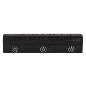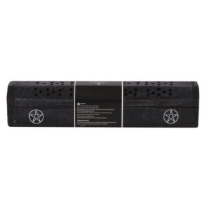 This incense gift set includes 10 black pepper fragranced incense sticks in a mango wood box. Printed with white pentagrams, this box doubles as both an incense holder and storage. Product Dimensions: H6.5cm x W31cm x D6cm Packaged Dimensions: H6.5cm x W31cm x D6cm
