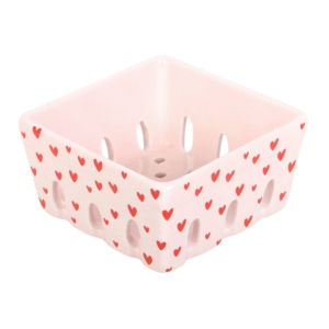 Add a sprinkle of sweetness to your storage with this ceramic basket decorated with a cheerful heart print. Designed to hold trinkets, sweets, berries or other treats, it’s a cute and practical way to decorate for the season of love. Food safe.