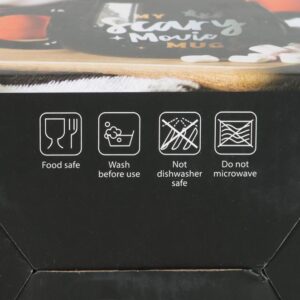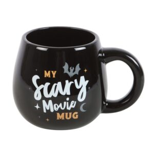 This Halloween themed mug is sure to get everyone excited for a classic scary movie! Features a flying bat and crescent moon illustration with “My Scary Movie Mug” text. With a rounded design, this will be a welcome addition to any seasonal mug collection! 490ml capacity. Not microwave safe.