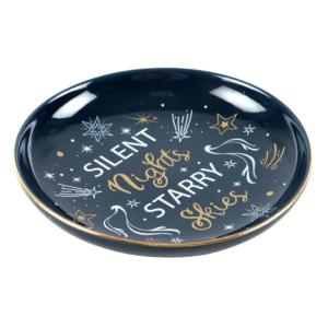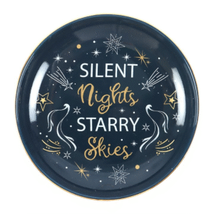 Keep your treasured trinkets safe with this celestial-inspired ceramic dish. Featuring a deep navy background with golden starry details and the phrase, ‘Silent Nights Starry Skies’, this piece is perfect for adding a touch of cosmic charm to a bedside table or dresser. A thoughtful gift for lovers of the night sky and all things magical.
