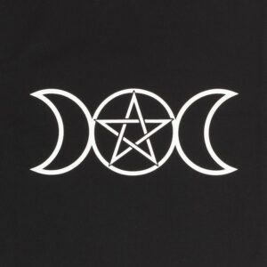 Perfect for doing the weekly shop, carrying library books, holding essentials for short day trips and more, this cotton tote bag makes a great eco-friendly addition to anyone’s collection. Features a triple moon design printed on black with a pentagram in the centre. 40cm tall, not including handles.