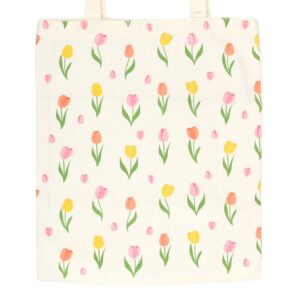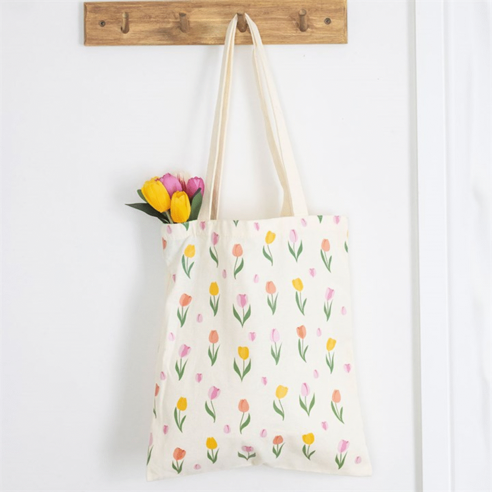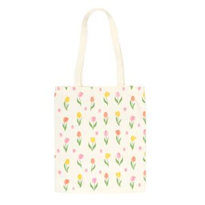 Carry springtime with you wherever you go with this reusable tote bag featuring a vibrant tulip print. A practical and stylish choice for shopping trips, gifting, or everyday use. 74% cotton, 15% polyester, 11% viscose. Hand wash only.