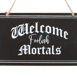Welcome ‘foolish mortals’ to your gothic lair with this hanging sign in black with timeless vintage-style lettering, perfect for accessoring the home with a dark and mystical aesthetic.
